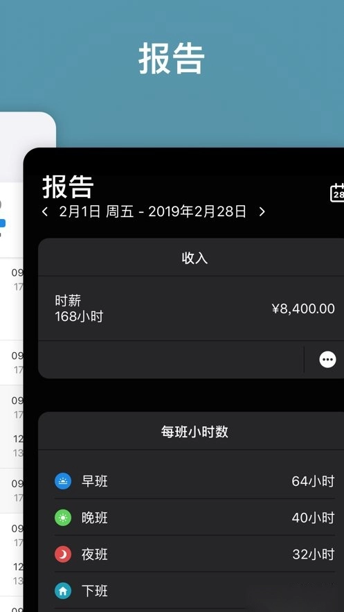 针对“收入”“每班工作小时数”“加班时间”以及“计算班次数”(像假期天数这类情况)来制作报告。