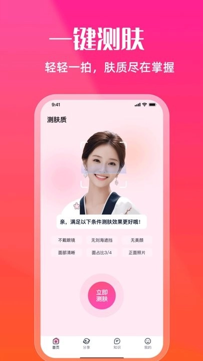 测肤质是一款面向现代爱美人群的专业肌肤检测与分析工具。借助先进的AI技术和大数据分析手段,它可为用户生成个性化的皮肤状态评估、护肤指导及产品推荐,助力用户更科学、精准地掌握自身肌肤情况,进而挑选出适配的护肤方案。