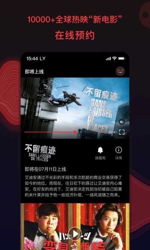5、每日全球新电影新闻、新片预告视频抢先看,海量电影随心看6、为用户提供剧情介绍、演职员及角色介绍、高清剧照海报、预告片视频等影视资料