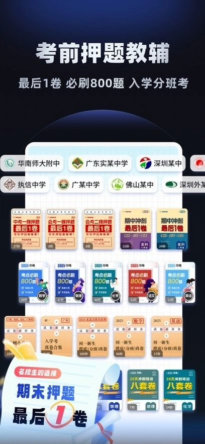 -功能2 押题教辅专区 涵盖必刷600题、押题最后1卷、期中期末真题100卷、名校内部月考卷、一课一练等金牌教辅,考点分类,实现全科全版本精准覆盖,助力孩子攻克高频重难点,快速提高成绩!