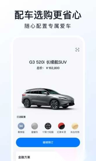 一起来设计您的专属小鹏、随时随地远程控制车辆、畅享省钱省心的充电及车主服务、参与社区互动交流,让试驾、看车、购车、用车过程更加轻松和有趣。