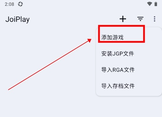3、打开joiplay模拟器1.20.410软件,并点击界面右上角的“+”按钮。