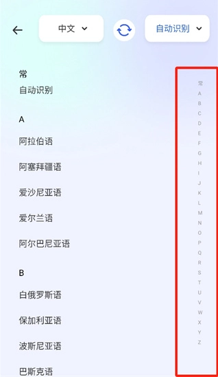 4、点击页面上方的语言选项,即可轻松切换翻译的语言类型。