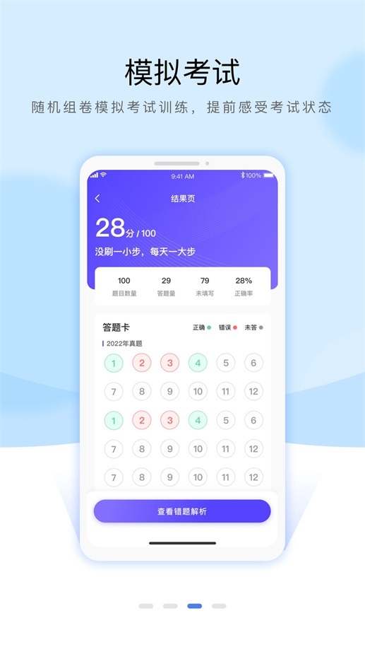 1、提供海量模拟试题,让用户可以进行大量的练习,丰富自己的题目知识库。