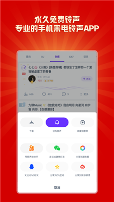 66铃声app紧跟潮流步伐,收录当下热门流行歌曲的铃声,种类丰富多样,应有尽有。而且,软件内还有众多铃声达人分享铃声,帮你轻松找到志同道合的伙伴。不仅如此,这款软件还支持为特定联系人设置专属的来电铃声哦。