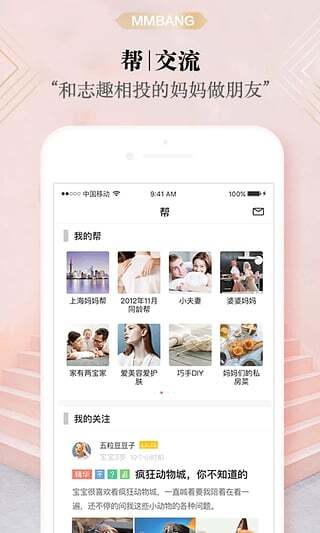 1、我的各类帮:像同预产期帮、同城帮、妈妈兴趣帮以及宝宝兴趣帮,妈妈们在这些帮里总有说不完的话题。