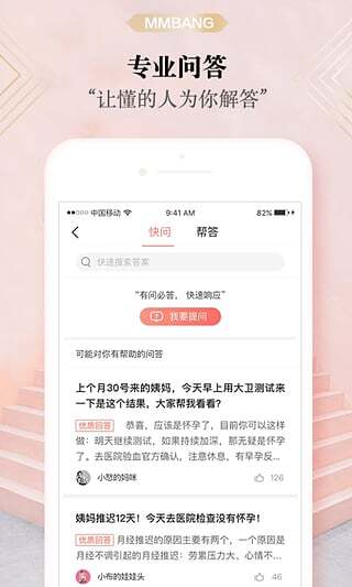 《妈妈帮》是一个专为妈妈们服务的社区,提供备孕、怀孕、育儿生活交流分享平台!