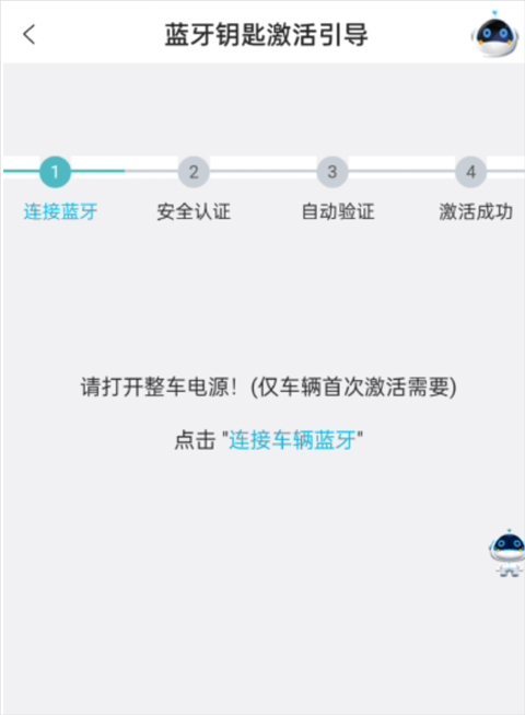 4、人在车上,打开整车电源(车辆启动或者车辆上电状态),点击【连接车辆蓝牙】