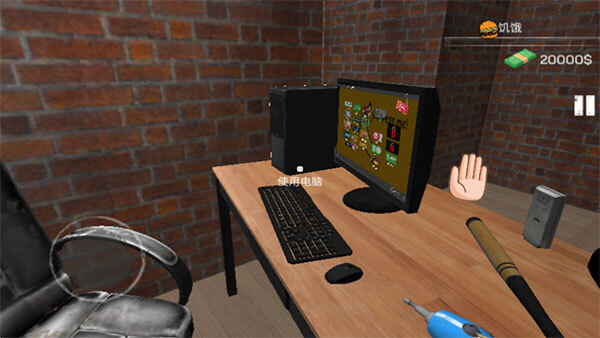 3、踏入网吧后,拿起扫帚将垃圾清扫干净。棒球棍可用于应对那些不付钱的顾客、流浪汉以及小偷。要是买错物品或者不想再要所购商品,直接用对应的道具对准商品按下左键,就能把商品卖掉。