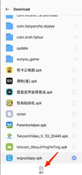 4、在download文件夹中,选择唯趣应用商店apk并确定。