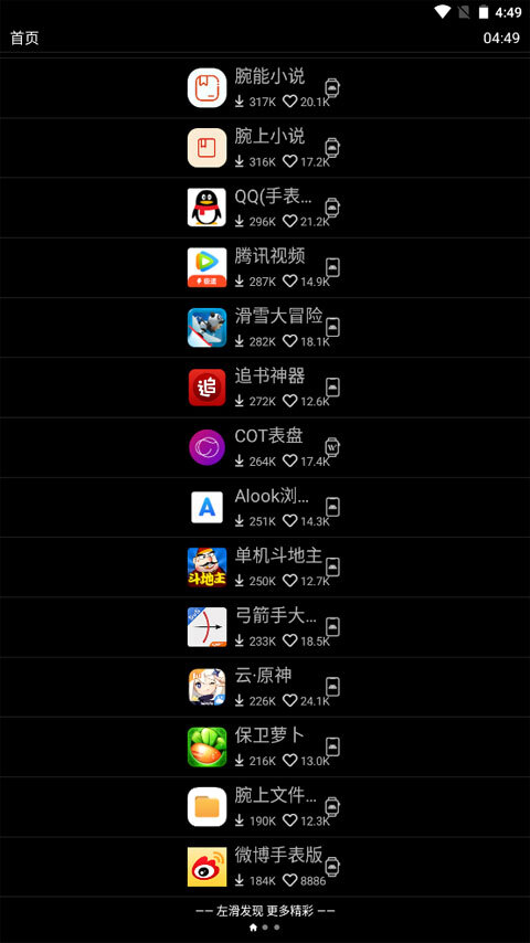 不仅如此,唯趣应用商店手表版在apk安装完成后,会自动删除安装包,不会占用丝毫内存。而且,这里面的软件体积都极为小巧,还没有任何广告干扰,相信这会深受不少用户喜爱。要是你恰好有一块智能手表,那就赶紧来本站下载体验吧。