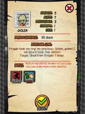 个人目标(重要):每名囚犯的个人目标均不同,有容易也有困难的,详细请在选择时查看