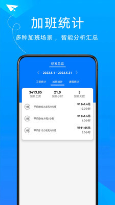 2、可精确计算加班时间、加班费用、工作时长等相关数据,使用户更清晰地知晓自身加班状况。