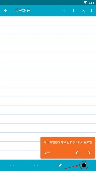 点击调色板来为当前书写工具设置颜色。