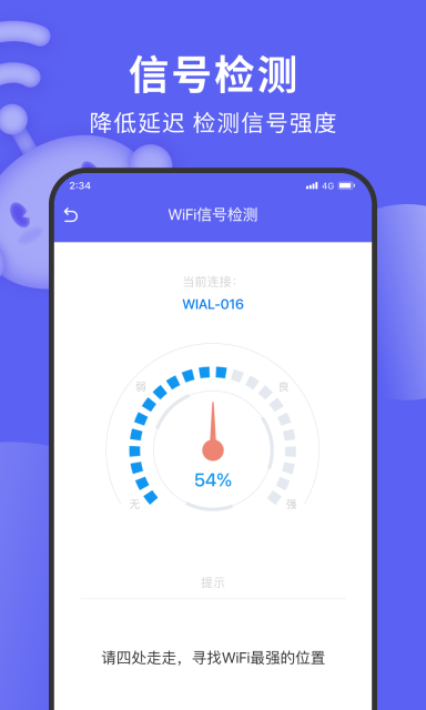 这是一款智能的WiFi助手app,具备自动检测网络环境并优化的功能。它能为用户打造更稳定、快速、安全且舒适的上网环境,不仅能有效解决相关网络问题,还进一步提供了一个更优质的上网环境,兼具安全、稳定与快速等特性。