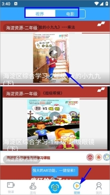3、用户除了能在主页观看微课学习视频,还可打开视频页面,此页面上有诸多数学学习课程以及电影。