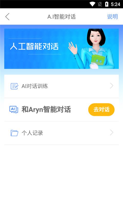 5、在ai智能对话栏中,用户可以开启人工智能对话,训练自己的口语;