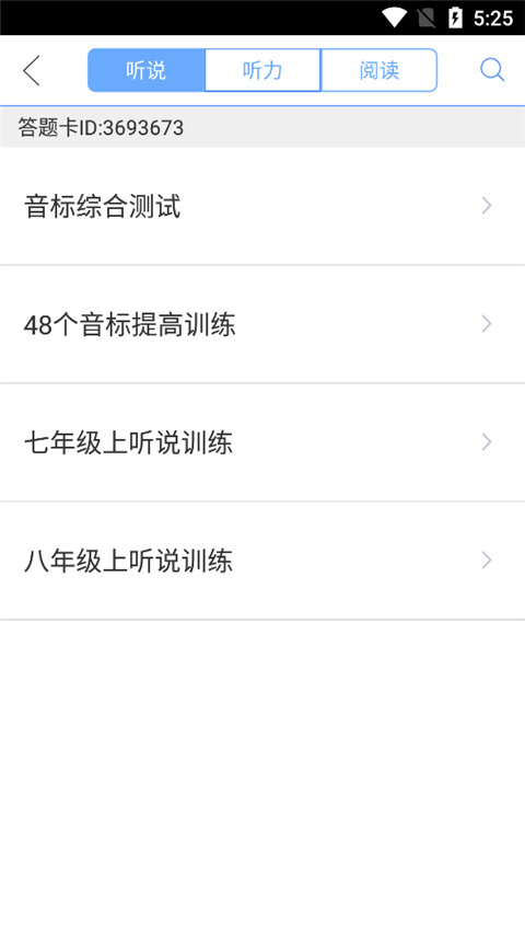 6、在测试中,其海量教材,用户可以开启听说、听力、阅读等各种项目的训练和测试。