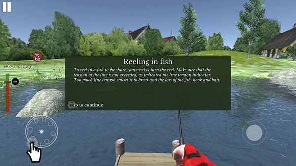 5、钓鱼时,若想将鱼卷拉至岸边,需转动卷轴。要保证线材的张力在张力指示器显示的范围内。若线过于紧绷,就可能会断裂,进而导致鱼、鱼钩和鱼饵一同丢失。