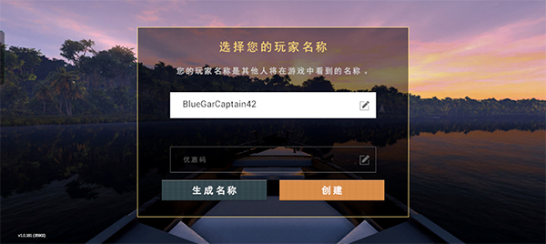 1、在本站下载并安装垂钓星球手机版后,第一步要创建一个名字,若不想费心思取名,可直接点击旁边的生成名称,随后点击创建就行。