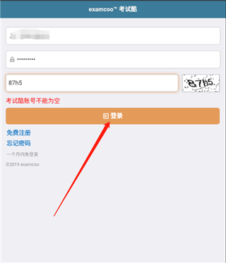 1、第一步,在手机上安装本站的examcoo考试酷app。安装完成后,进入主界面,依次输入考生号、密码,接着输入验证码,便可登录。