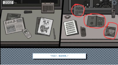 6、之后如图点击桌面上的物品,下方对话框中负面的话不要点击。