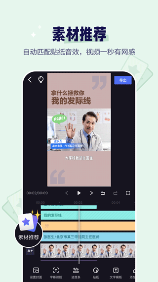 【素材丰富多样】涵盖齐全种类的花字与贴纸,还有全网皆可使用的视频素材,更有各类转场效果及音效。别忘记给视频加上包装,让它变得更加有趣!