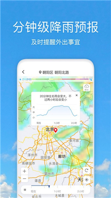 1、未来降水预报精确至分钟级别,能知晓何时降雨、何时雨停。